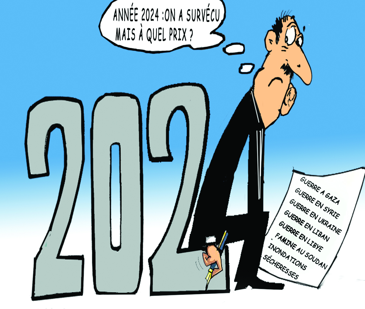 Adieu madame 2024, tu t’en vas avec ton cortège de défis et de vacarmes. Tu as été une année exigeante, parfois impitoyable, nous laissant des cicatrices et des souvenirs difficiles à oublier. Les épreuves que tu as semées sur notre chemin ont testé notre résilience, mettant à l’épreuve notre capacité à affronter l’inattendu.