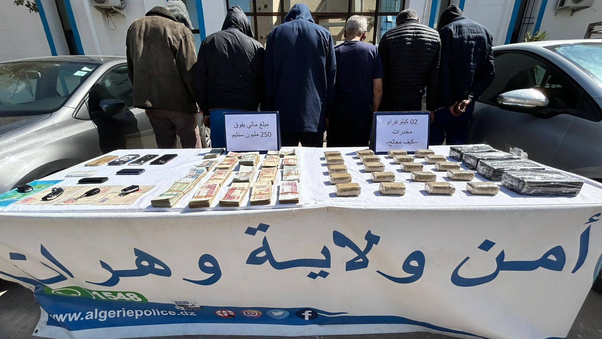 Certains membres du réseau faisaient l’objet de mandats d’arrêt et de décisions judiciaires. Ils ont été arrêtés et 2 kg de kif traité ont été saisis, ainsi qu’une somme d’argent provenant des revenus du trafic estimée à 250 millions de centimes. L’opération a été menée après exploitation d’informations de terrain faisant état de l’activité d’un individu impliqué dans la vente de stupéfiants, utilisant son domicile comme lieu de stockage avant la distribution à bord d’un véhicule, dans les quartiers urbains. Les investigations, menées en coordination avec le parquet territorialement compétent, ont permis d’identifier le suspect et son lieu de résidence, conduisant à son arrestation avec son complice et à la saisie d’une plaquette de drogue. La poursuite des enquêtes a permis d’identifier les autres membres du réseau, dont le principal fournisseur. Dix-neuf plaquettes de drogue prêtes à être transportées pour une transaction ont également été saisies. L’opération s’est soldée par l’arrestation de six personnes, dont un ressortissant de nationalité marocaine, la saisie de 2 kg de kif traité, d’une somme de 250 millions de centimes, ainsi que de quatre véhicules utilisés pour faciliter leurs activités criminelles. Après accomplissement des procédures légales, les mis en cause ont été présentés par devant le procureur de la République près le tribunal de Fellaoucen, où un mandat de’ dépôt a été délivré à leur encontre. B. Adda