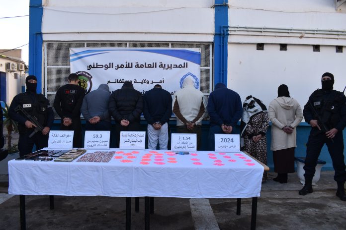 Dans le cadre de la lutte contre la criminalité sous toutes ses formes, et plus particulièrement le trafic de drogues et de psychotropes, la police de Mostaganem, à travers l’unité de recherche et d’intervention (BRI) de la police judiciaire, a démantelé deux réseaux criminels dangereux composés de huit personnes, dont deux femmes spécialisées dans le trafic de psychotropes et de drogues dures, et a saisi une quantité de ces substances, a indiqué un communiqué rendu public. Les opérations ont eu lieu cette semaine, suite à la mise en œuvre du travail de renseignement sur le terrain et à la surveillance des suspects dans le cadre de la compétence territoriale de la brigade. Après exploitation de toutes les informations et la mise en place d’un plan rigoureux, les suspects ont été arrêtés alors qu’ils étaient sur le point de conclure des transactions. Lors de l’intervention sur le premier réseau, les policiers ont saisi 1 680 comprimés d’ecstasy, environ 2 grammes de cocaïne, ainsi qu’une balance électronique présentant des traces de cocaïne. Concernant le second réseau, 344 capsules de prégabaline (300 mg) ont été saisies, ainsi qu’une somme totale de 59 millions de centimes et 3 000 DA provenant du trafic, trois voitures particulières et une moto, utilisées pour le transport et la distribution des psychotropes et drogues dures, ainsi que des téléphones portables. Les suspects ont été présentés par devant le procureur près le tribunal de Mostaganem pour deux affaires : Possession et trafic de drogues dures au sein d’une organisation criminelle et Possession et trafic de psychotropes avec circonstance de récidive. B. Adda